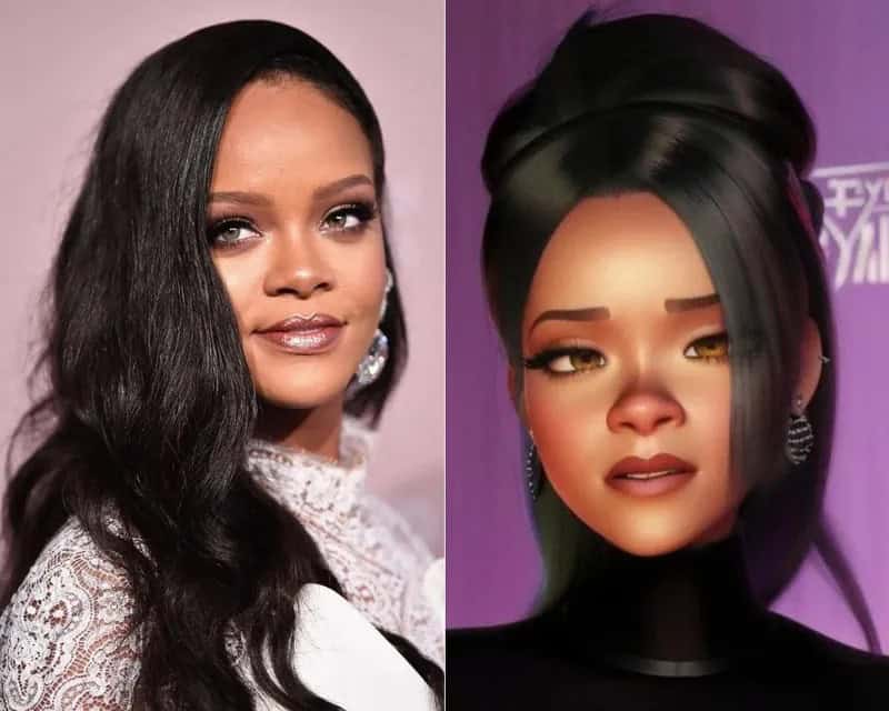 Rihanna’s charisma rivals animated characters, bringing them to life with her innocence and beauty, as seen in this magical picture.