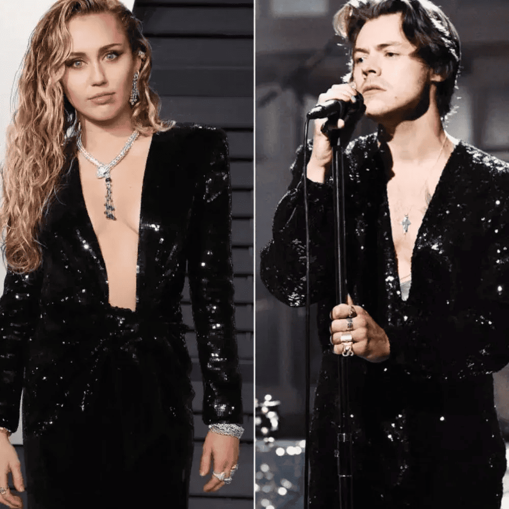 Fashion knows no gender boundaries, as Miley Cyrus and Harry Styles demonstrated in a black sequined jumpsuit. In 2019, Cyrus rocked the chic outfit at the Oscar party for Vanity Fair, while Styles donned it during his SNL performance a short while later. They even seemed to share the same accessorizing ideas. Both undeniably looked fantastic.
