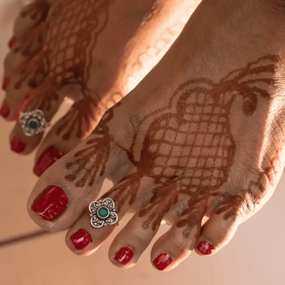 In Tamil Nadu, a region in India, the wedding ring holds a unique tradition where it is not placed on the finger but on the “index” toe of the foot. As part of this ritual, two silver rings are delicately positioned on the foot of the bride-to-be, symbolizing the aspiration for a prosperous pregnancy. Interestingly, it is believed that gold rings should be avoided in this context due to their association with the goddess of abundance. Since the feet are considered the most humble part of the body, adorning them with gold would be regarded unfavorably.