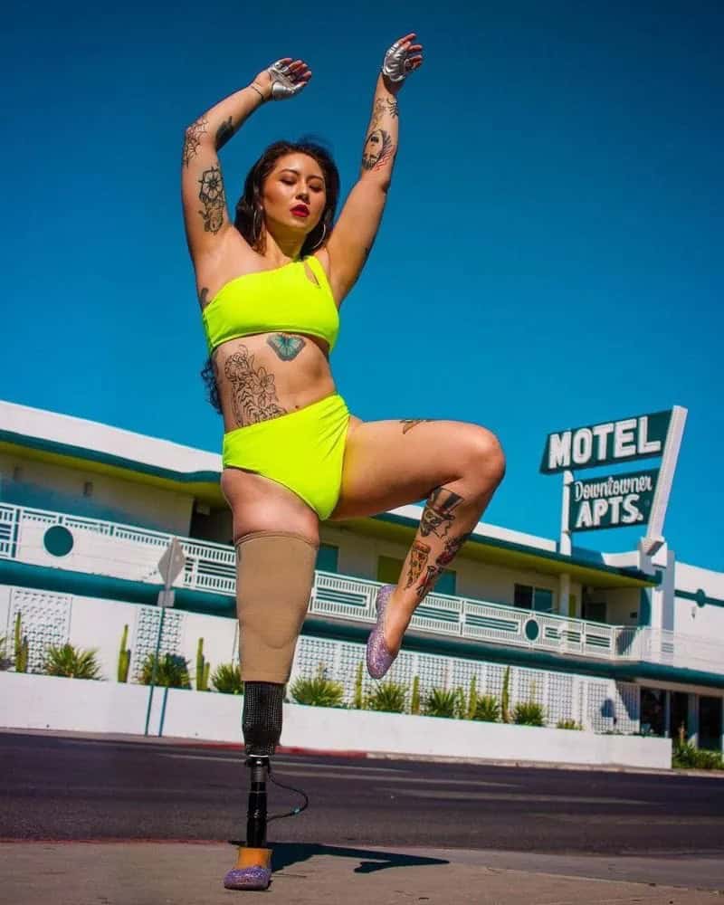 This inspiring photo captures a determined woman transcending her physical limitations, defying social expectations, and fully embracing life with joy.