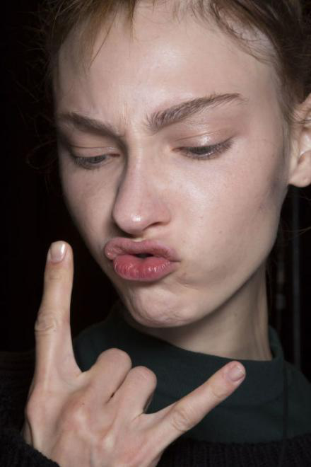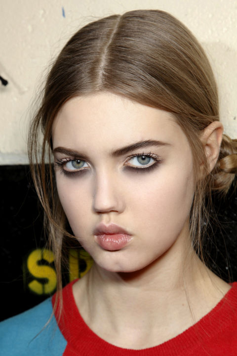 This Marc by Marc Jacobs show had really great beauty, okay? The point of this unconventional model pic is to show you the eye gloss, which you can achieve by patting Eight Hour Cream or something similarly dewy in the middle of the lid. Even as the rest of you gets sweatier, you’ll still have a different kind of shine highlighting part of the face.