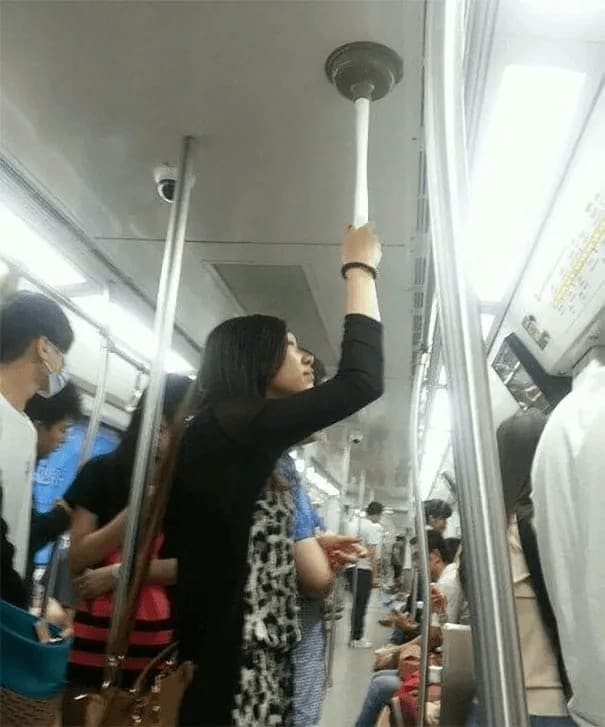 This simple but effective adaptation allows her to establish her secure grip regardless of her position in the subway car, offering a lesson in making one’s opportunities amidst the urban crush.