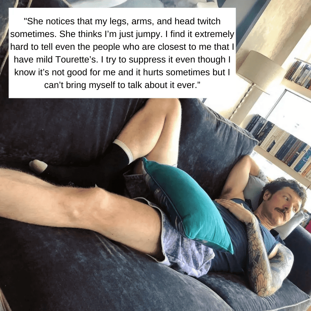 Hopefully, he can realize one day that Tourette’s, like any other condition, is nothing to be ashamed of. Surely, his partner would accept him for being himself. It must be painful and difficult to suppress it.