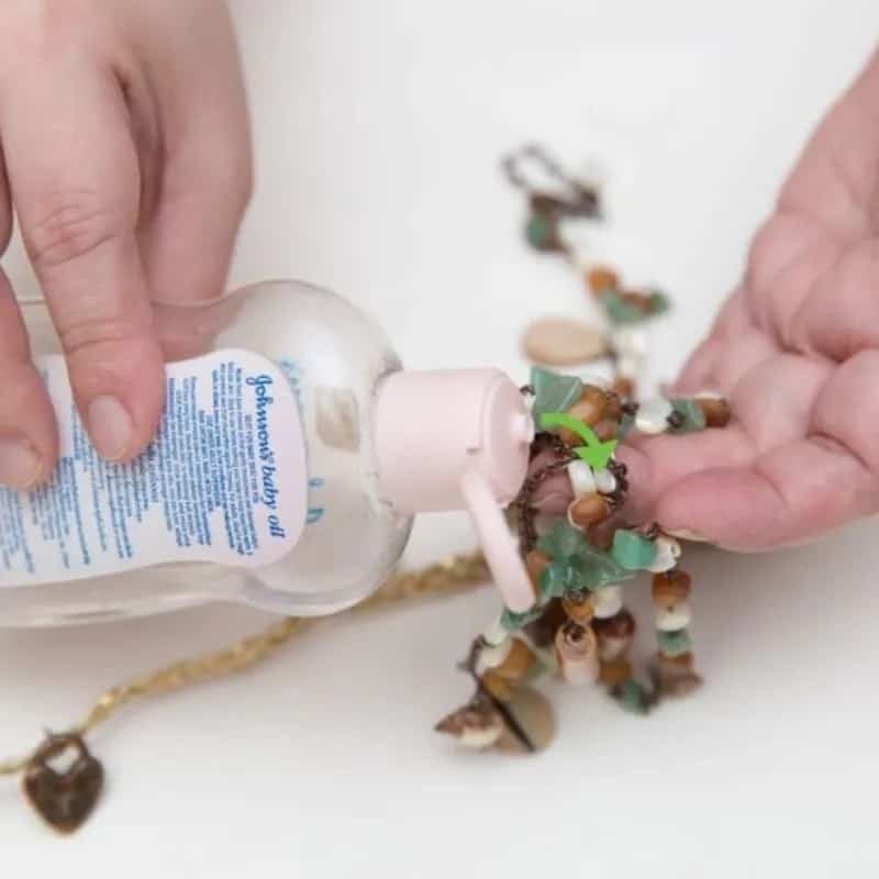 Untangling jewelry can be frustrating, especially when necklaces get knotted. But with a few drops of baby oil, the process becomes much simpler.