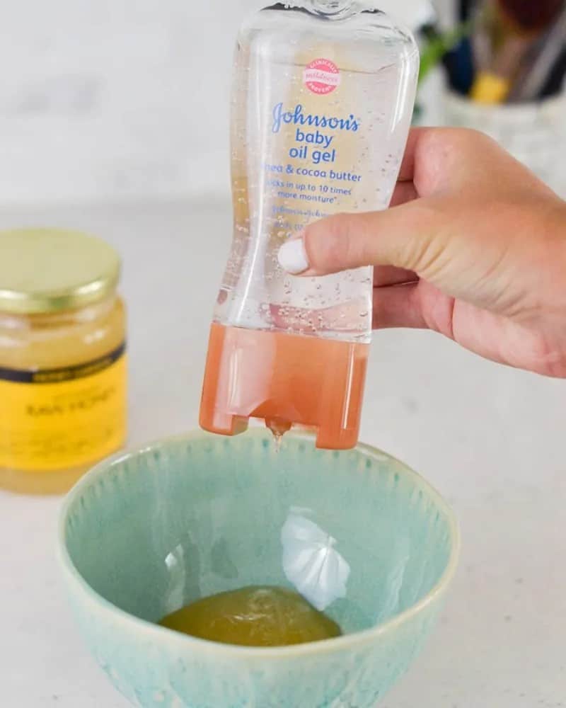 Here’s another cost-effective homemade beauty recipe. Social media suggests mixing baby oil gel with honey to make a hair mask, but regular baby oil works, too.