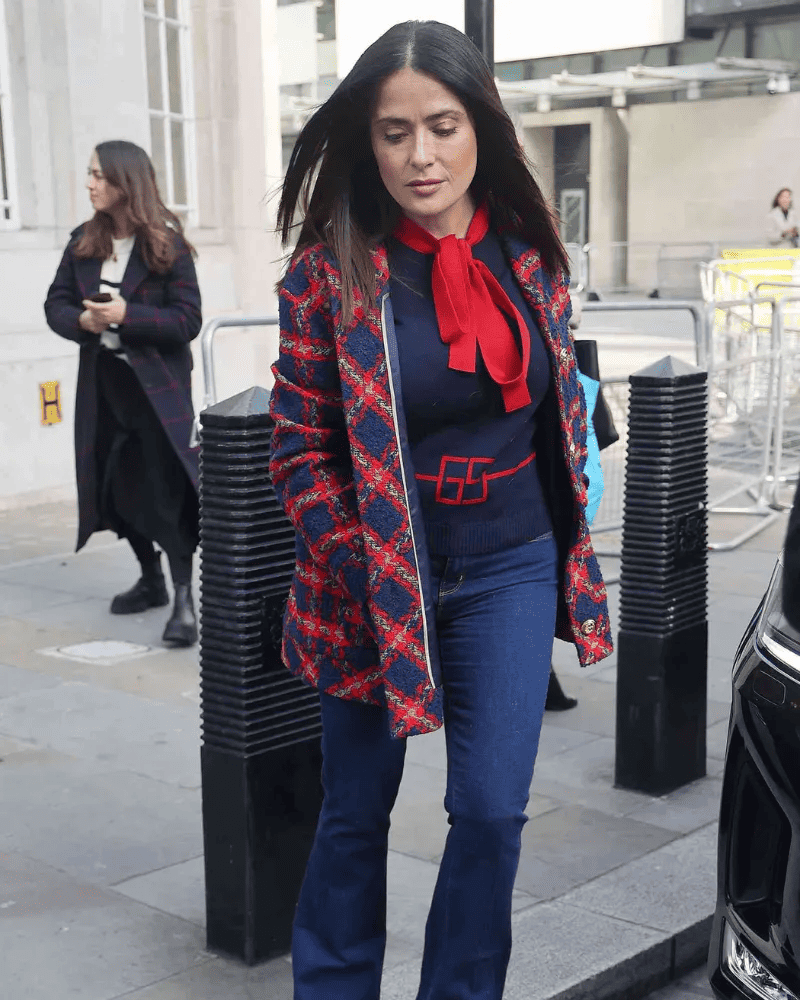 Salma Hayek’s style is mesmerizing, characterized by a captivating blend of sleek elegance and bold daringness. She consistently leaves us in awe, from her sophisticated gowns to her audacious ensembles. Let’s not forget her curves – she expertly accentuates them in the most tasteful manner possible.