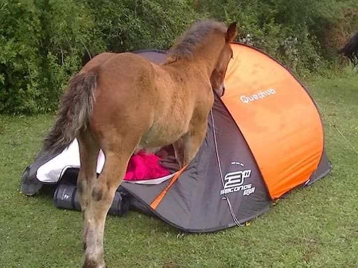 Bizarre Camping Moments: Weirdest, Funniest, Strangest! By Chris Eilers There are tents for kids and tents for adults. But alas, a tent for horses remains a missing piece. << Previous NEXT >>