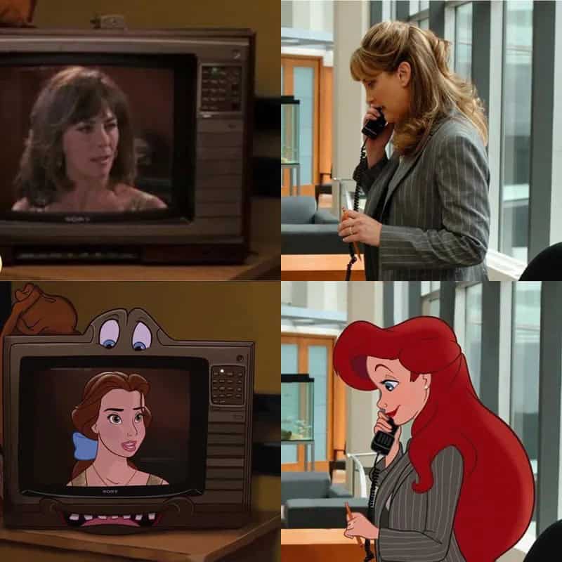 Jodi Benson and Paige O’Hara, voices of Ariel and Belle, a cameo in the 2007 film as a secretary and a soap opera character.