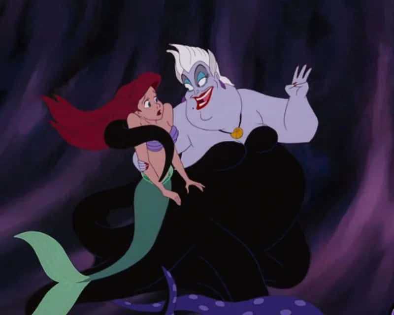 Disney’s 1989 animated film The Little Mermaid features Ursula, one of its most popular villains. She offers Ariel the chance to become human to pursue Prince Eric’s love.