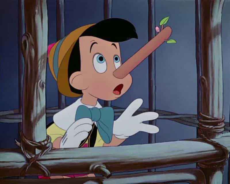 Pinocchio’s nose growing when he lies is one of the first things that comes to mind about him, making you think he pays for his fibs throughout the movie.