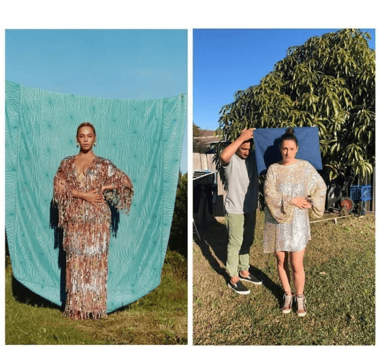 You can always don your daughter’s prom dress if you don’t have sequins. Throw on an oversized translucent shirt over it, and voila, you’re ready for your grand entrance! It’s always good to have a supportive presence by your side. Strike a pose and let your true self shine!