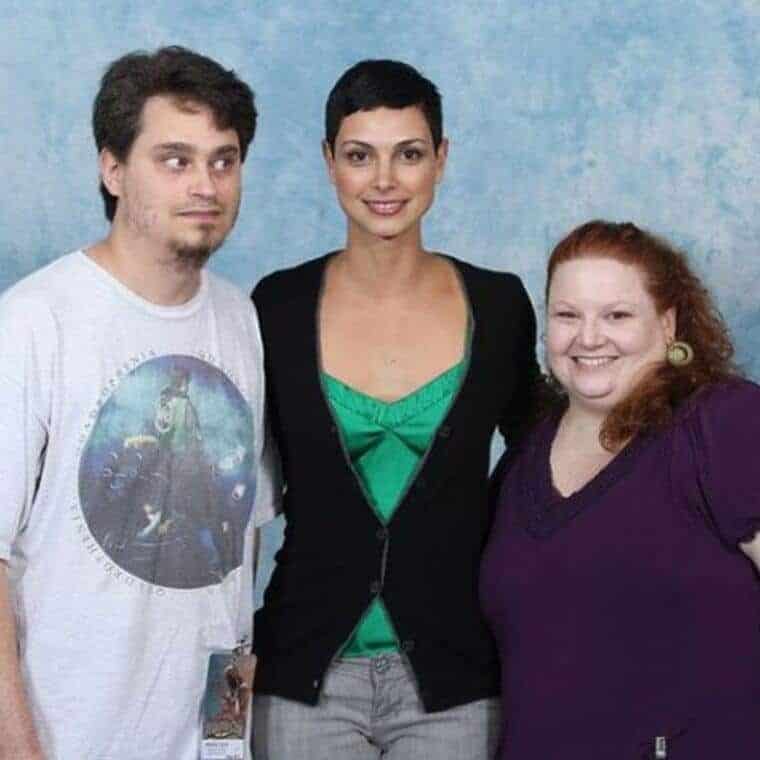 Morena Baccarin and her two male and female followers form a pose for the camera, but one of the male followers pays absolutely no attention to the camera at all. Because he turned his head aside in such a manner, the only thing that we can do is speculate on the thoughts that were running through his mind at that time.