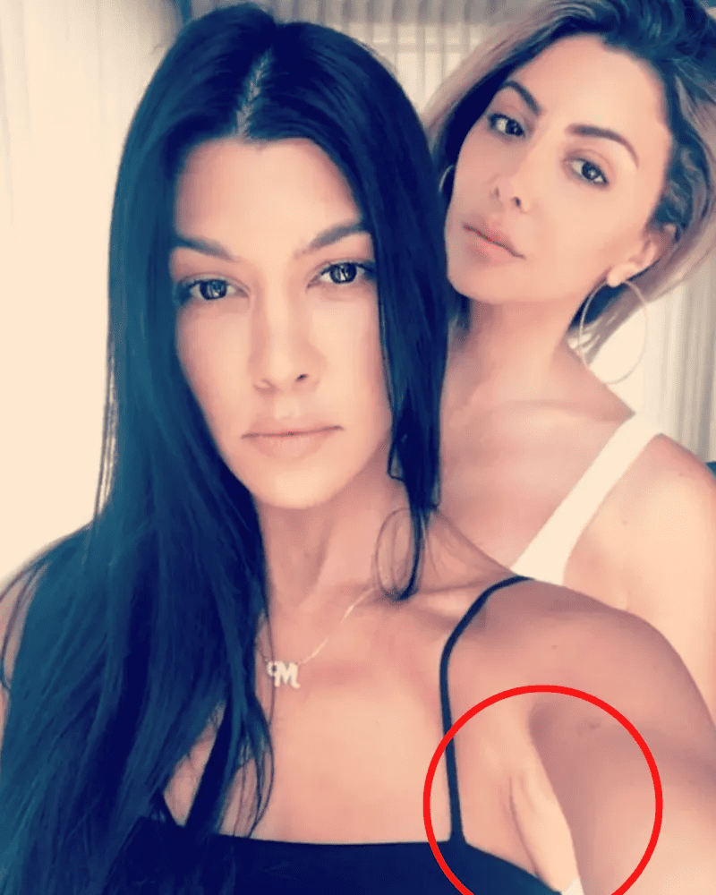 In a photo shared by Kourtney Kardashian featuring her friend Larsa Pippen, an intriguing anomaly stands out in Kourtney’s armpit area. The noticeable alteration suggests that some digital adjustments were made, and it appears that Kourtney inadvertently overlooked the need to correct her armpit afterward.