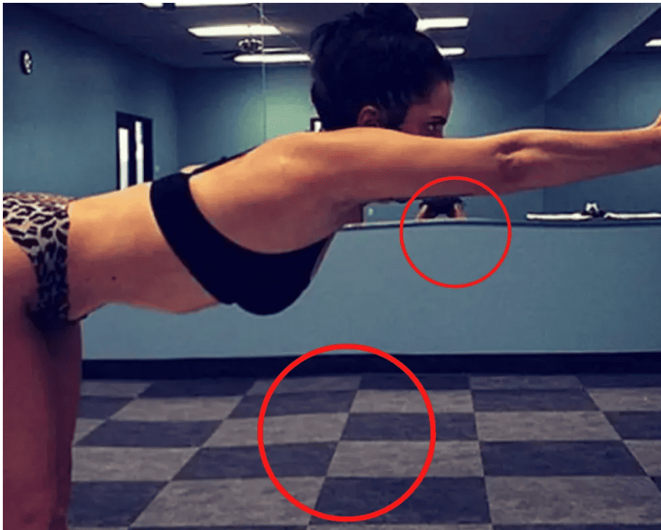 The peculiar appearance of the floor further fuels suspicions that the pop star may have digitally altered her stomach and chest as well. Despite Lady Gaga’s assertion that she was “born this way,” the image’s evident distortions challenge the authenticity of that claim.