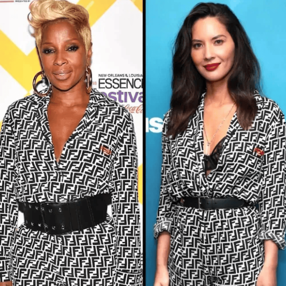 “Fendi” was the unanimous response when asked, “Who are you wearing?” by both Mary J. Blige and Olivia Munn. Both celebrities chose to flaunt a black and white jumpsuit, showcasing their unique styles. Mary J. rocked hers at the Essence Festival, pairing it with matching peep-toe pumps for an elegant look. In contrast, Olivia opted for a more relaxed approach. However, the jumpsuit looked fabulous on both of these incredibly beautiful ladies.