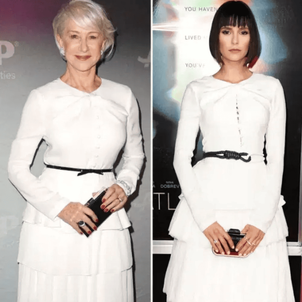 A generational “who wore it best?” moment unfolded as seasoned veteran Helen Mirren and young star Nina Dobrev donned the same Prabal Gurung dress with ruffles. Mirren exuded class at a film premiere, pairing the dress with gray heels and a stylish clutch. In contrast, Dobrev brought a touch of edge to the dress at the premiere of Flatliners, complementing it with jeweled strappy pumps. Both celebrities put their unique spin on the dress and looked fantastic.