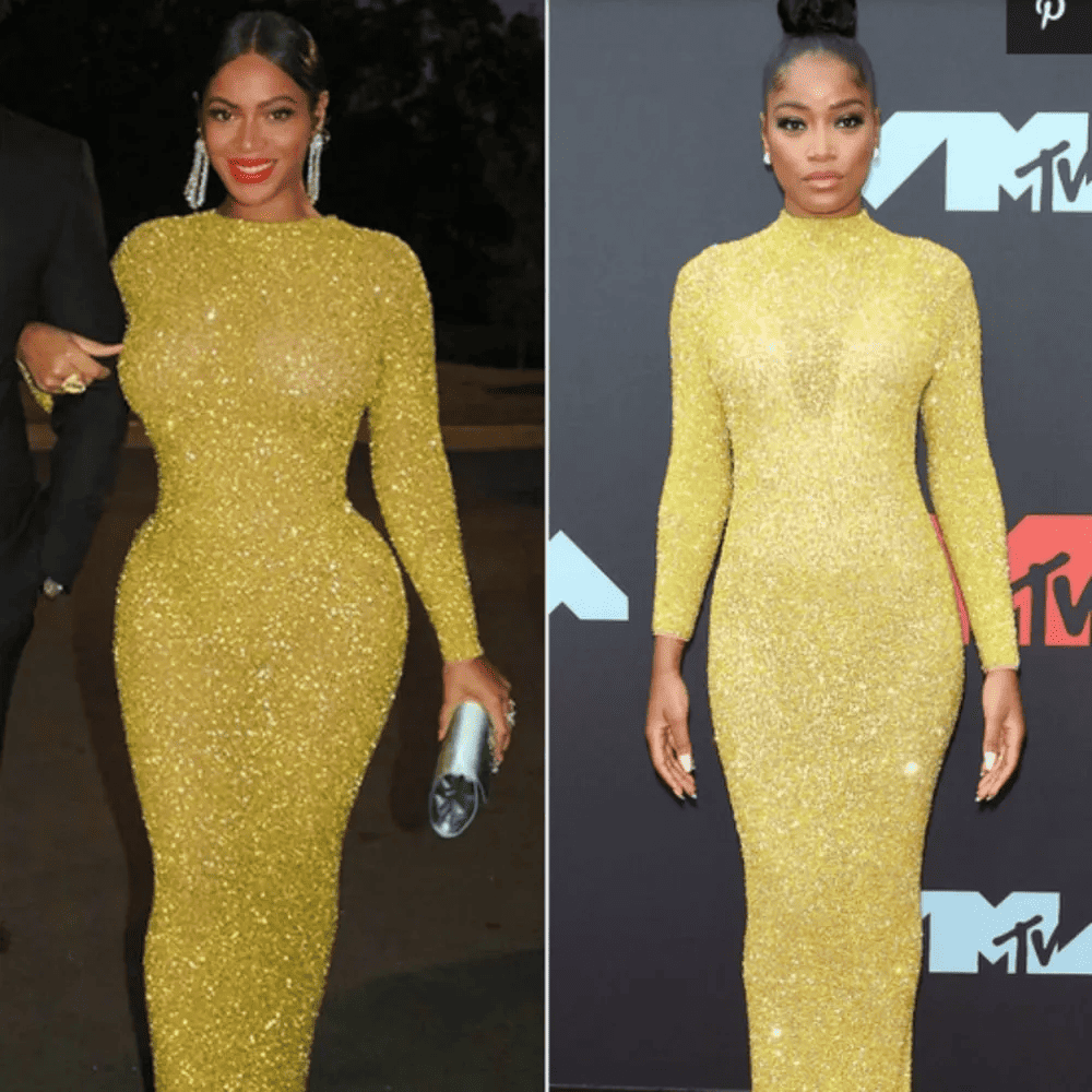 Yousef Aljasmi gowns adorned both Beyonce and Keke Palmer for separate formal events. These form-fitting gold dresses were sure to turn heads, and both celebrities carried off the sparkle effortlessly. Beyonce accessorized her version with a stylish clutch and dazzling earrings, while Keke opted for a slightly more understated approach. However, Keke’s bright white nail polish added a complementary touch to her dress.