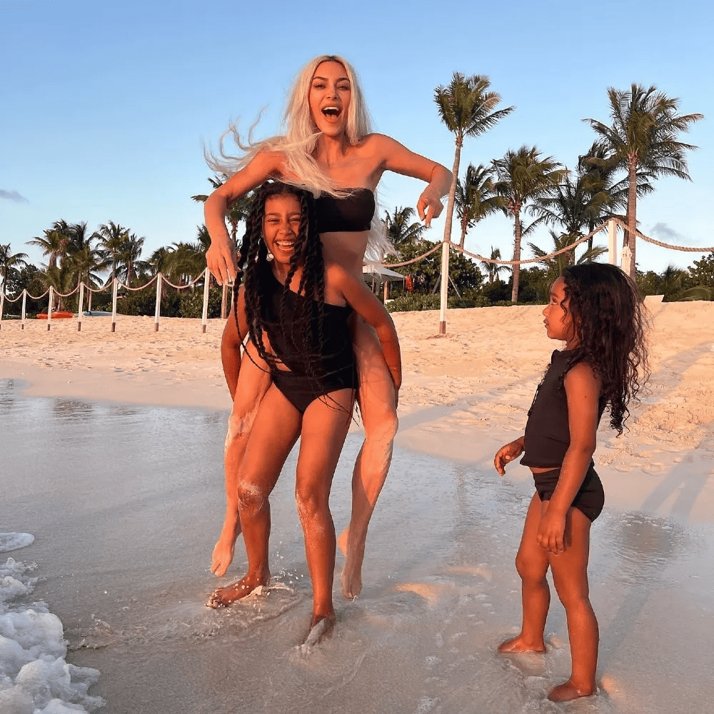 It’s heartwarming to witness Kim Kardashian savoring precious moments with her children. As a mother of four, from her previous marriage to Kanye West, Kardashian cherishes the simple pleasures of a beach outing, much like any other family. In particular, the delight of coordinating matching bathing suits adds an extra touch of endearment to their beach adventures.