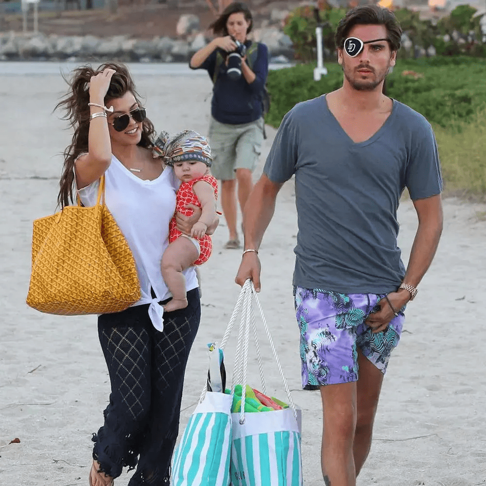 In situations when one’s “family jewels” require adjustment in public, it becomes evident that sometimes there is simply no time to spare. This seems to be precisely what happened during a family beach day outing for Scott Disick and Kourtney Kardashian.