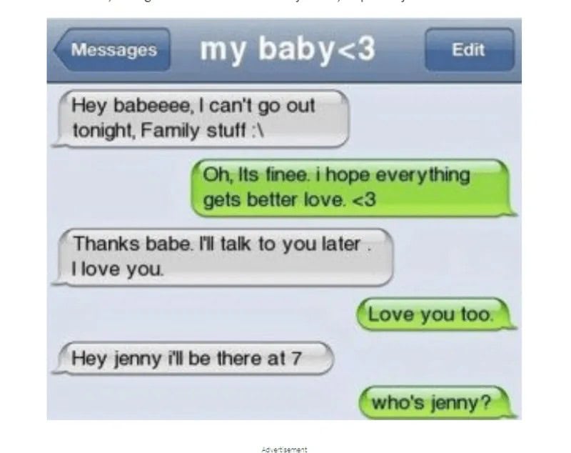 His girlfriend then received a message meant for Jenny, saying he’d arrive at seven. Unfortunately, her name isn’t Jenny.