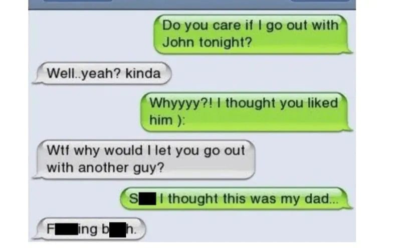 She thought she was asking her dad for permission, but it was her boyfriend. He got upset about her hanging out with John.