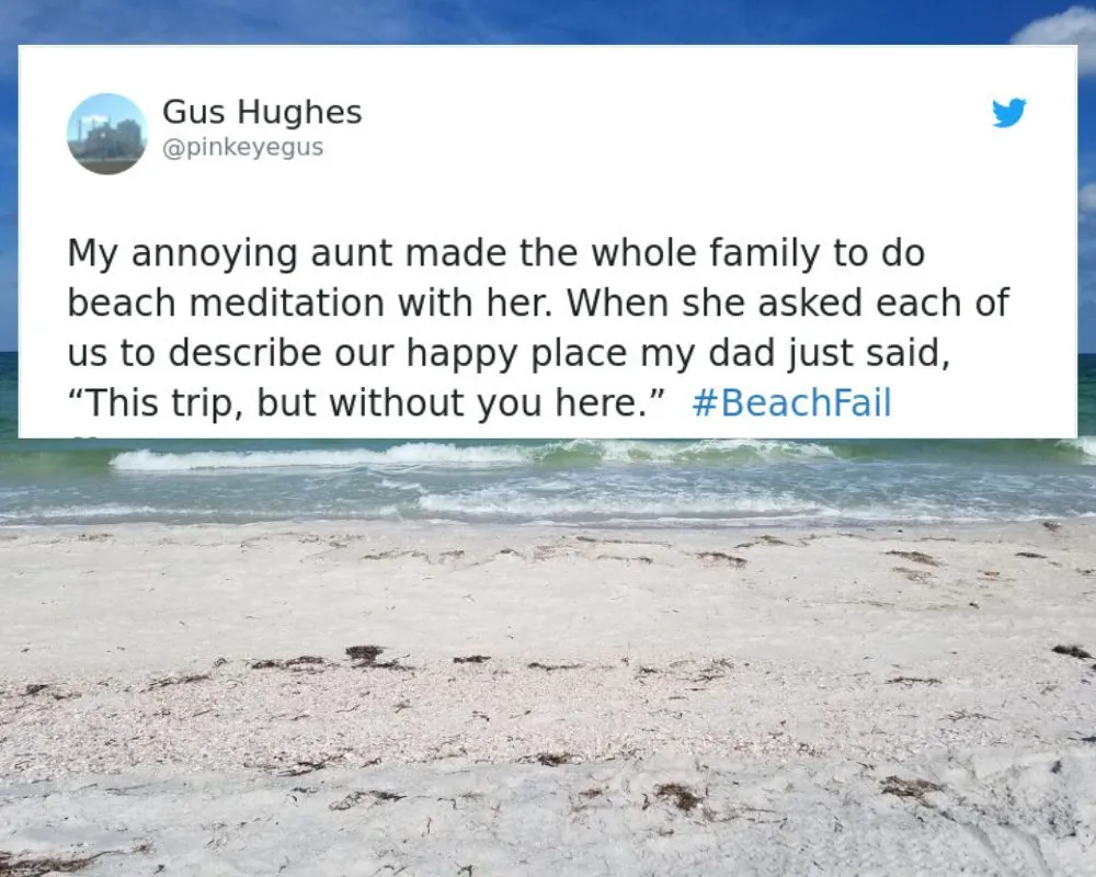 We’re sure that this aunt was really happy to include her family with her in her morning meditation on the beach. We’re also rather certain that this was just the final straw for this tired dad, considering he made the comment without skipping a beat.