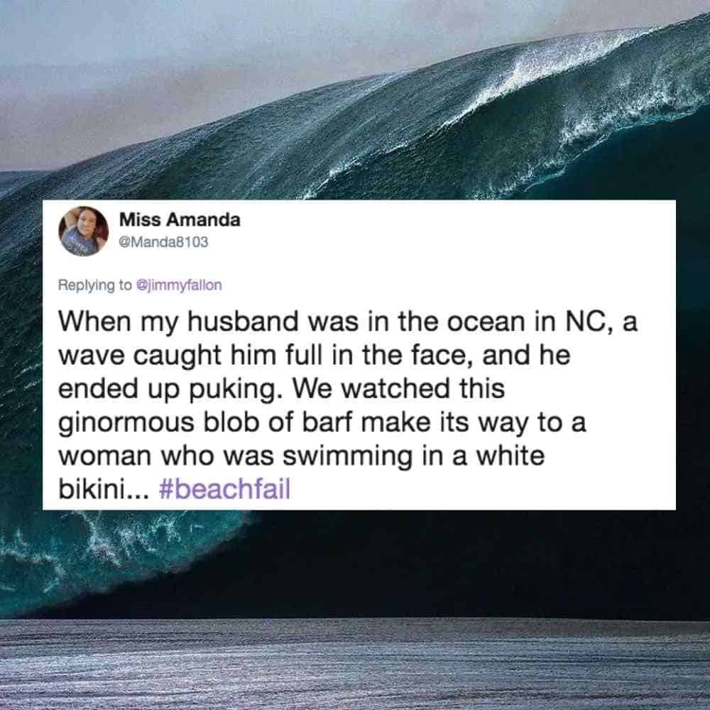 If you caught one of those waves right in the mouth like this person, you might throw up too. As if that wasn’t unfortunate enough, a woman innocently swimming nearby in a bikini was about to have her day ruined as well.