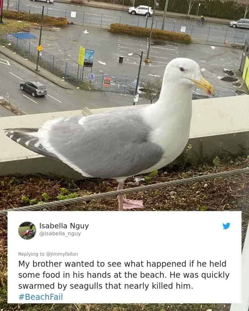 At this point, we’re getting concerned that people aren’t learning the number one rule of the beach — please, please, please don’t try to take on the seagulls. That’s a lesson that this OP’s brother learned the hard way but we’re sure he remembered it from there on out.