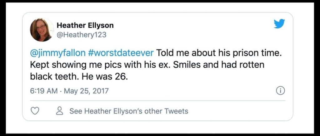 Heather’s date wasn’t just a little awkward — it was a red flag parade. Her date had a criminal record, which isn’t always a deal-breaker, but things went downhill fast. He showed up with bad breath and talked nonstop about his ex, neither of which are great first-date moves. Instead of focusing on getting to know Heather, he dragged his baggage out for everyone to see.