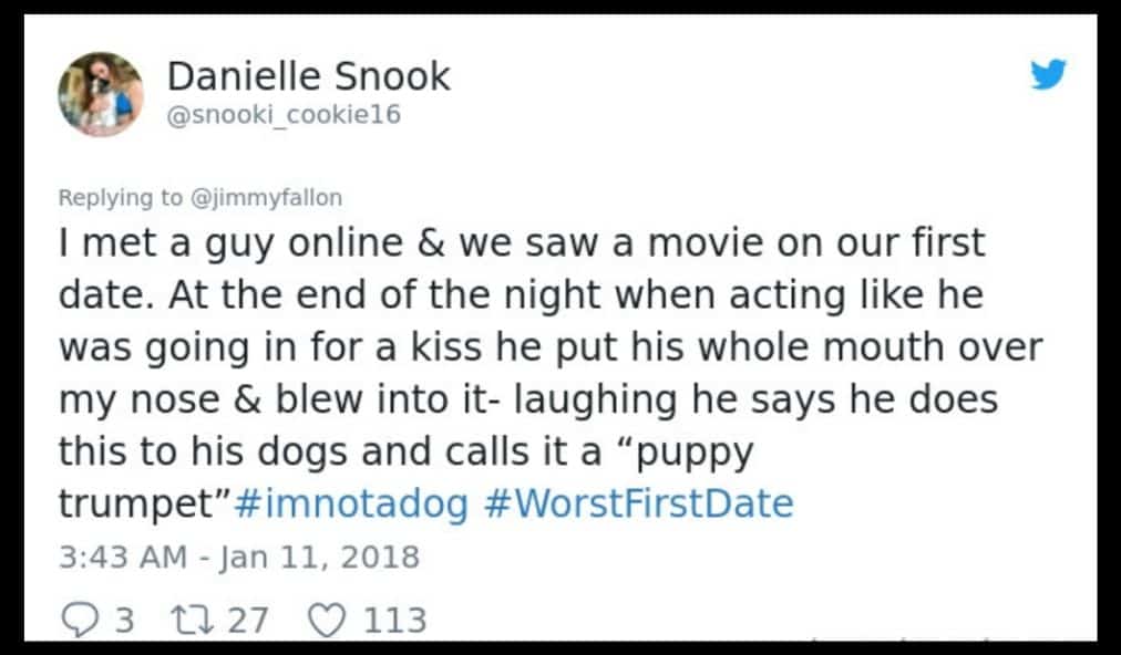 Trying to be cute on a first date is fine — in fact, it’s encouraged. But there’s a line between sweet and straight-up strange, and Danielle’s date definitely crossed it. What started off as innocent nose kisses turned into something a little less charming when he decided to blow on her nose. Yes, you read that right. Like she was a baby or a sleepy puppy. Not exactly a swoon-worthy move.