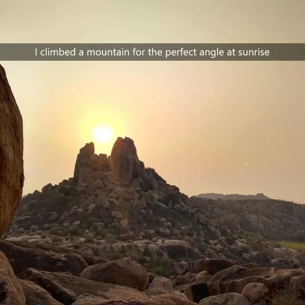 One brave individual embarked on a mountain-climbing adventure, hoping to capture the perfect sunrise, and their efforts were met with resounding success. The photograph captures the sun gracefully ascending between the twin peaks of the mountains, casting its radiant golden light over the rugged terrain below.
