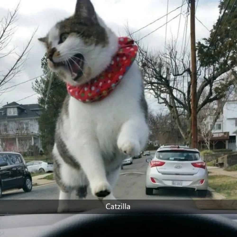 But what if, instead of a massive reptile lurking beneath the city’s surface, it was an adorable, fluffy bundle of fur with delicate pink toe beans launching an attack? This Catzilla, perched atop a car’s windshield, may not exude the same level of terror as its cinematic counterpart, but it’s certainly trying its best!