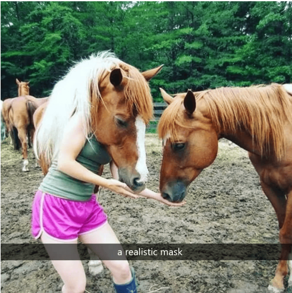 The backstory reveals that the girl was engaged in feeding one of the horses when another horse playfully peered over her shoulder. In a quick movement, she likely repositioned her head and neck to align with the second horse’s head, thus creating the optical illusion that she has a horse’s head instead of a typical human one.