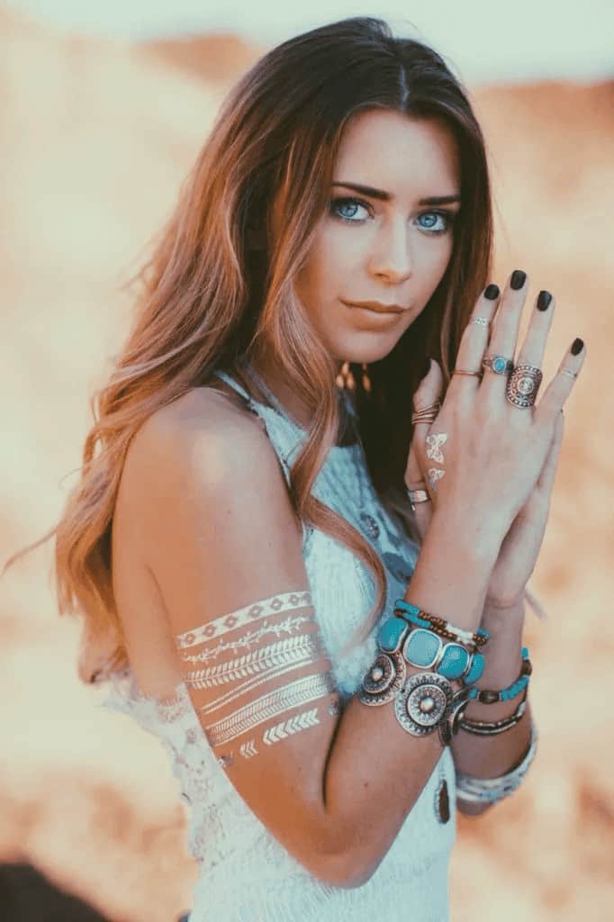 Last but not least, we have this blue-eyed beauty whose Coachella look is all about the details. She’s donned the standard white crochet maxi dress, but what truly catches our eye is the exquisite turquoise and silver jewelry, evoking the spirit of Santa Fe, New Mexico.