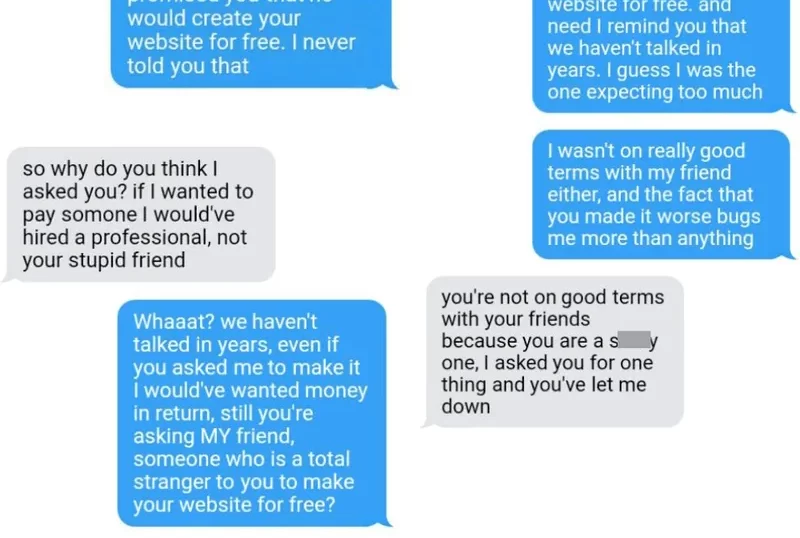 The fact they called them a bad friend afterward shows it’s a good thing the poster hadn’t talked to them in years. Good luck finding someone willing to make you a free website, dude!