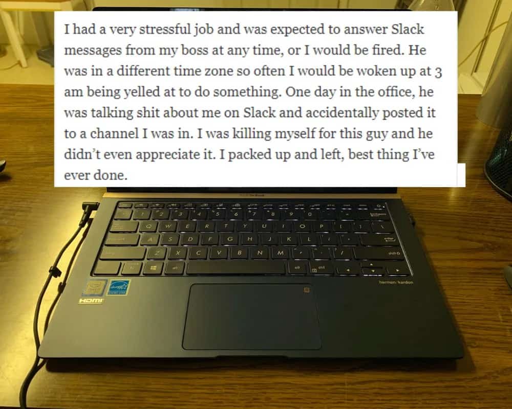 What made it even more astonishing was that the employee and the boss were in different time zones, resulting in all-hour messages. A single slip-up on the employee’s part exposed the boss’s true colors, leading to their “I quit” moment.