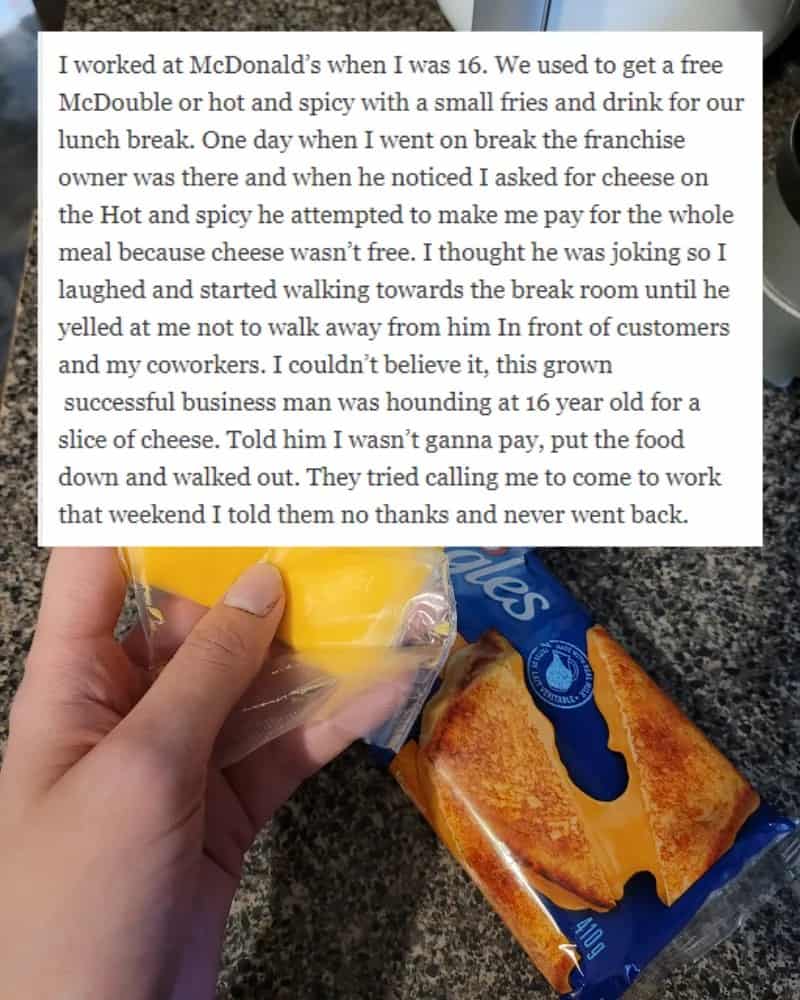 However, this owner’s reaction was completely out of proportion. Not only was he upset, but he also directed his anger at a 16-year-old employee. It’s worth emphasizing that this entire incident revolved around a single slice of cheese.