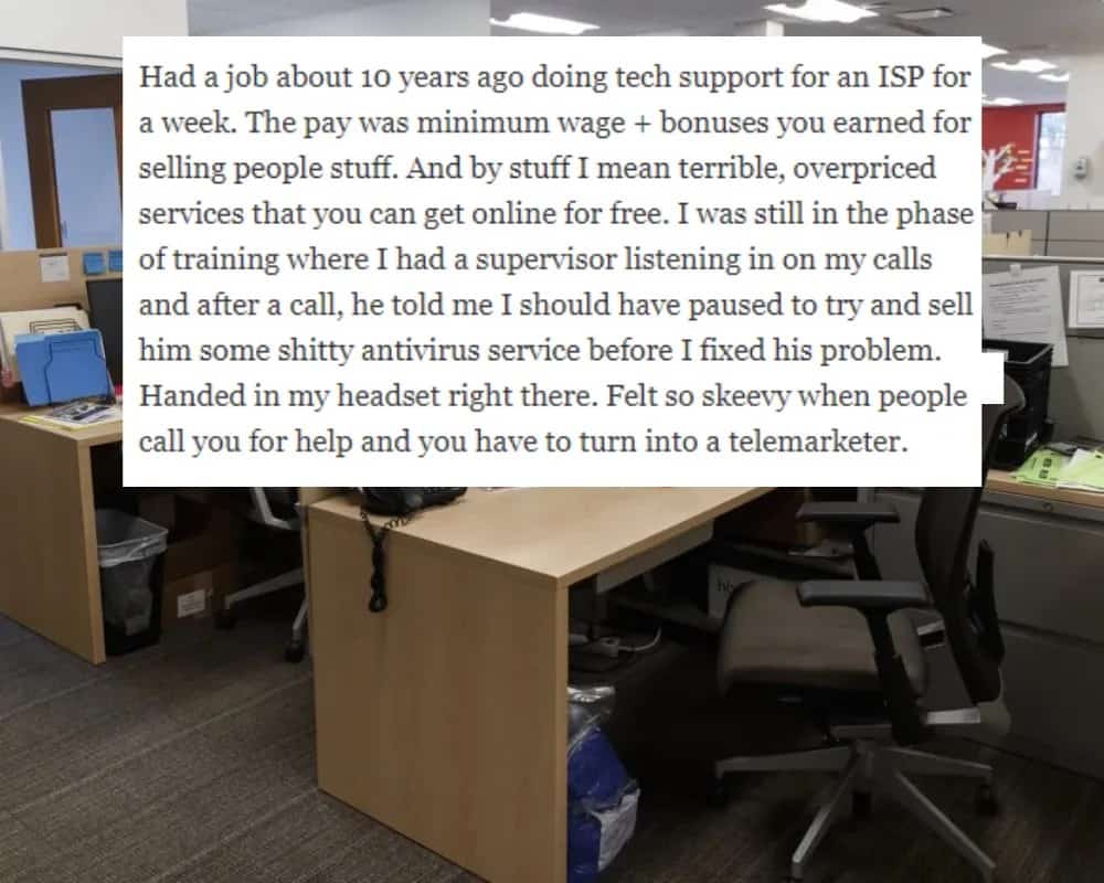 After listening to calls with this person, their supervisor told them that they were solving too many problems compared to selling products. Such a prioritization didn’t align with the individual’s values, leading them to question the nature of their work.