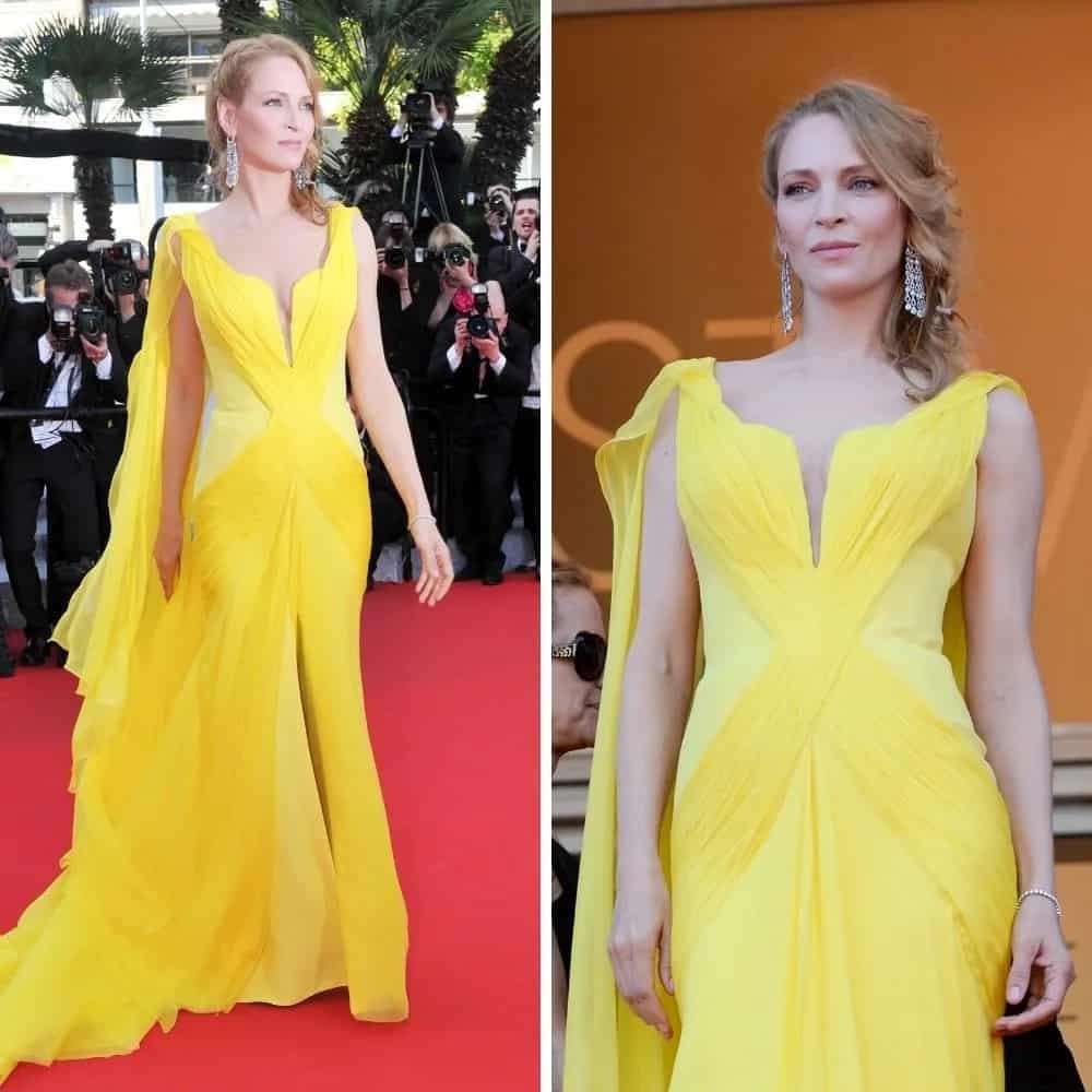 Yellow is a challenging color to pull off, which is why it’s rarely seen on red carpets and at award shows. However, Uma Thurman has a knack for handling difficult tasks with ease.