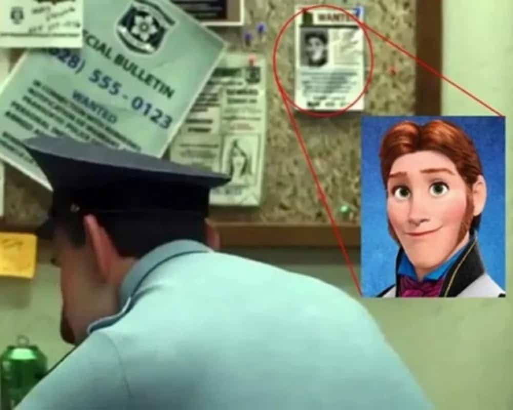There are plenty of easter eggs to be found throughout the Disney movies, especially in the more recent ones. The Mouse’s flicks tend to be much more self-referential these days, often using callbacks to previous movies or dropping little nuggets to hint that all of these films are based in the same universe. Take Big Hero 6, for example. In a brief scene, a “wanted” image showing Hans from Frozen can be seen in the background.