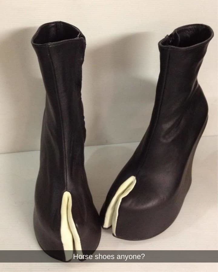 Furthermore, the shoes’ excessively flat front leaves little room for any toe larger than half a centimeter, leaving us perplexed by the designer’s oversight. Even equines would likely struggle to don such footwear.