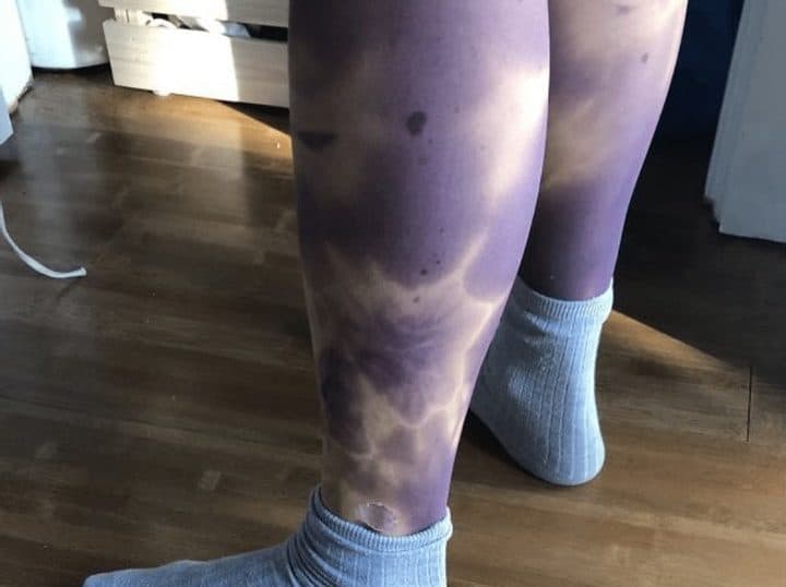 Attempting to tie-dye leggings with purple dye might seem like a fun idea, but it can have unintended consequences. Instead of achieving a vibrant design, the purple hue might make the legs appear to lack blood circulation or even give the impression of severe bruising.