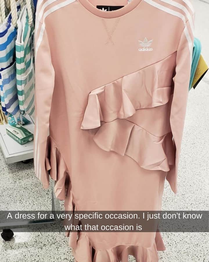 It would have been more prudent to divide this dress into separate components, potentially salvaging its appearance. Perhaps Adidas should consider sticking to their expertise in sportswear and accessories, where their proficiency shines.