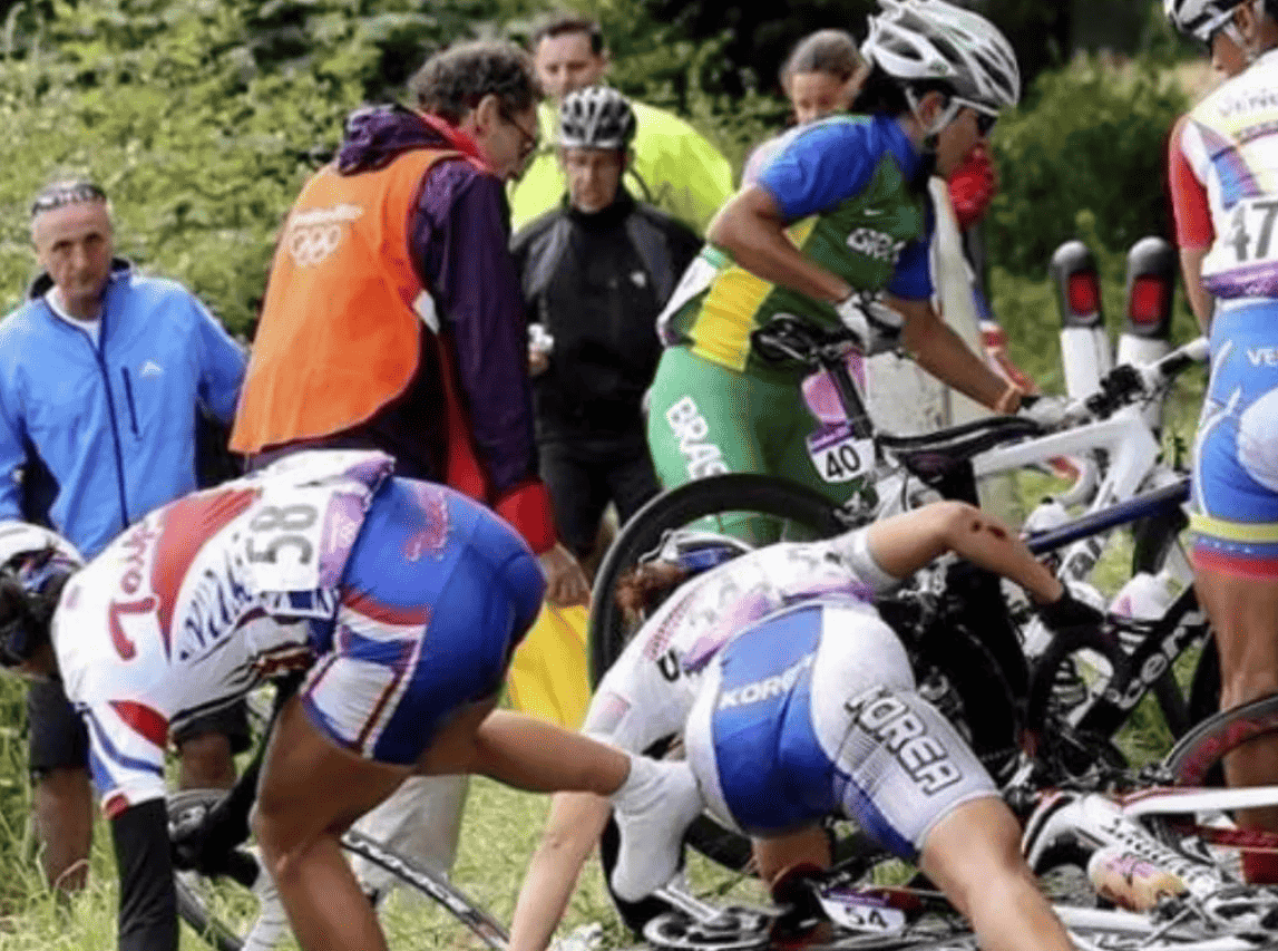 Na Ah and Fernanda da Silva Sousa Sousa inadvertently triggered a spectacular mishap, causing an entire team of bikers to pile up in a chaotic tangle.