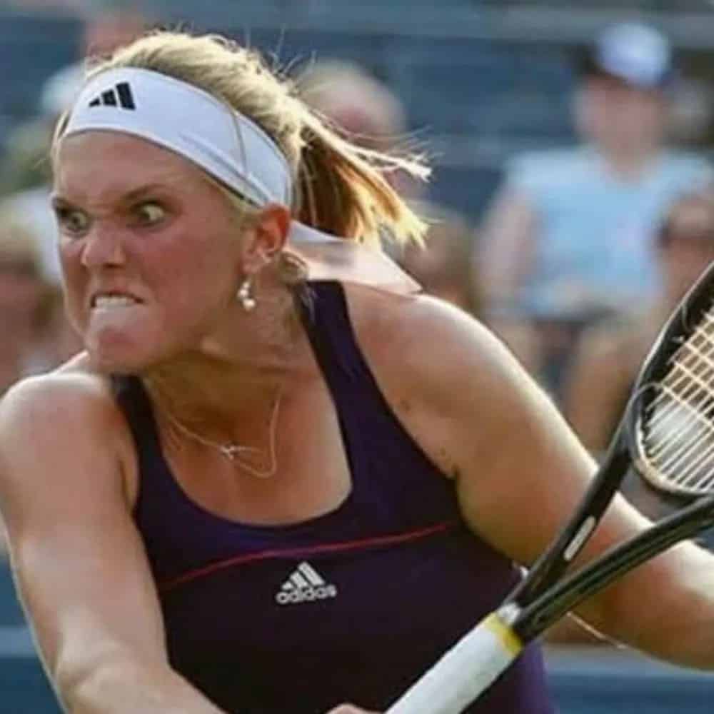 In this instance, the tennis player appears to be thoroughly vexed, though it could be her unique way of channeling aggression while striving for victory. Regardless, the resulting image might be considered an epic fail, provoking a chuckle from those who come across it.