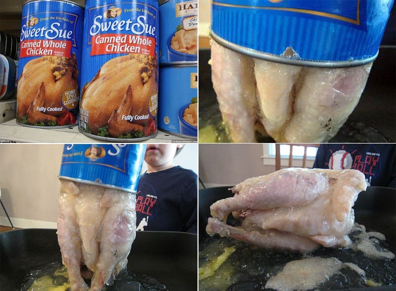 Introducing the “canned whole chicken,” a convenience innovation. This meal arrives fully prepared and ready to serve, ensuring a hassle-free dining experience. Although it may not present itself as delicious as advertised, it holds the promise of delightful flavors.