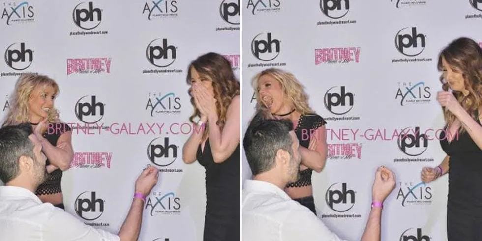 For this young lady, the anticipation was palpable when her boyfriend introduced her to none other than Britney Spears, and, in a heartwarming twist, he seized the moment to ask for her hand in marriage. In that unforgettable instance, excitement and joy collided as she simultaneously faced the unexpected and extraordinary blend of meeting a pop icon and receiving a marriage proposal.