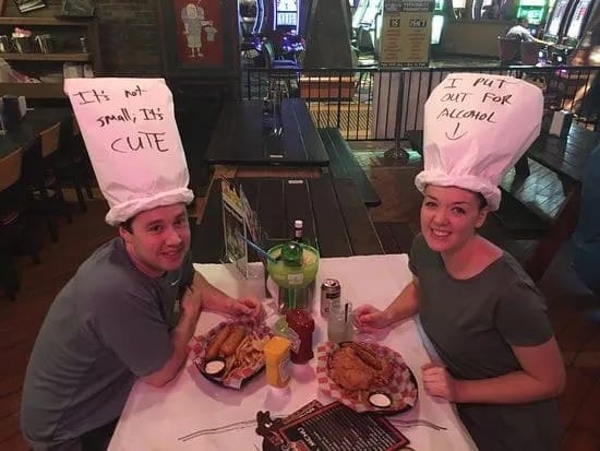 In either case, their server certainly got a kick out of their interesting hats, as did we. Their unique choice of headgear adds a delightful touch of humor and quirkiness to their romantic escapade, showing that love can be just as entertaining as any wild Vegas adventure, and sometimes, even more so.