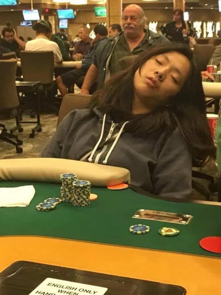 This happens when you forget to nap before a big night of gambling. The trip to Sin City can sometimes leave visitors feeling jet-lagged and exhausted. This Vegas-goer should have cut her losses and gotten some shut-eye before gambling away all her money. In Vegas, it’s always important to know when to quit, though they’ve done their best to design casinos so that the above keeps happening. It’s a tough combination, but the house always wins.