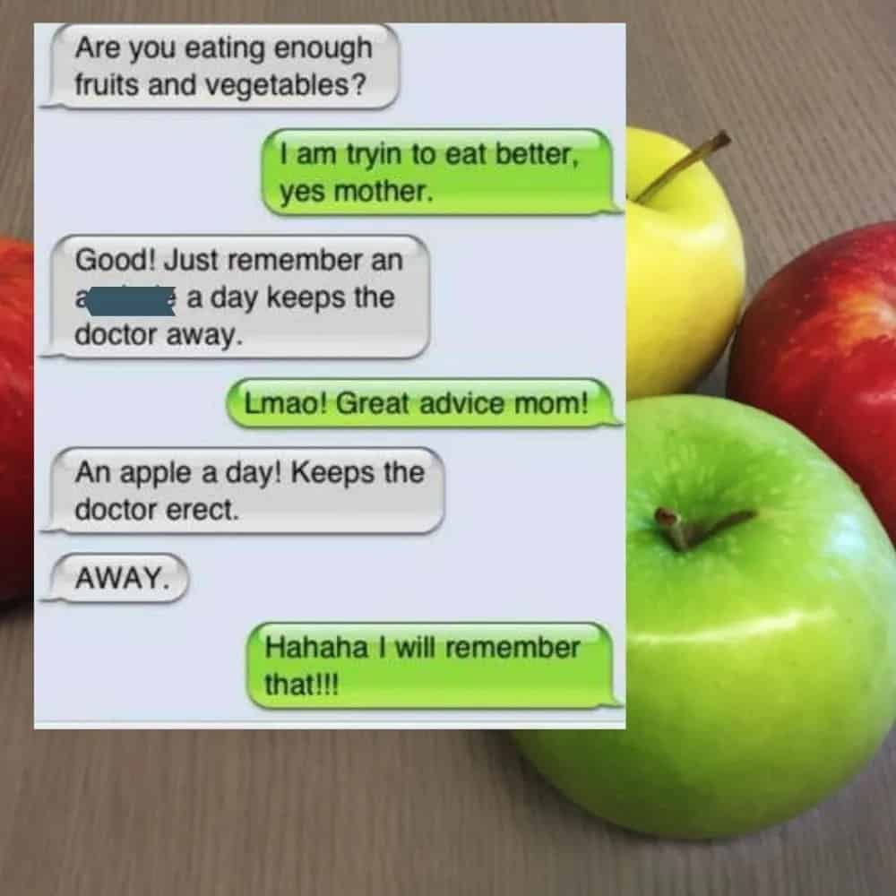 We’ve all heard the saying, “An apple a day keeps the doctor away,” but this mother had a unique twist on the age-old advice. However, the unconventional message was more likely due to an auto-correct issue than a novel health tip. Despite the unintended humor, it added a lighthearted and fun element to the text conversation.